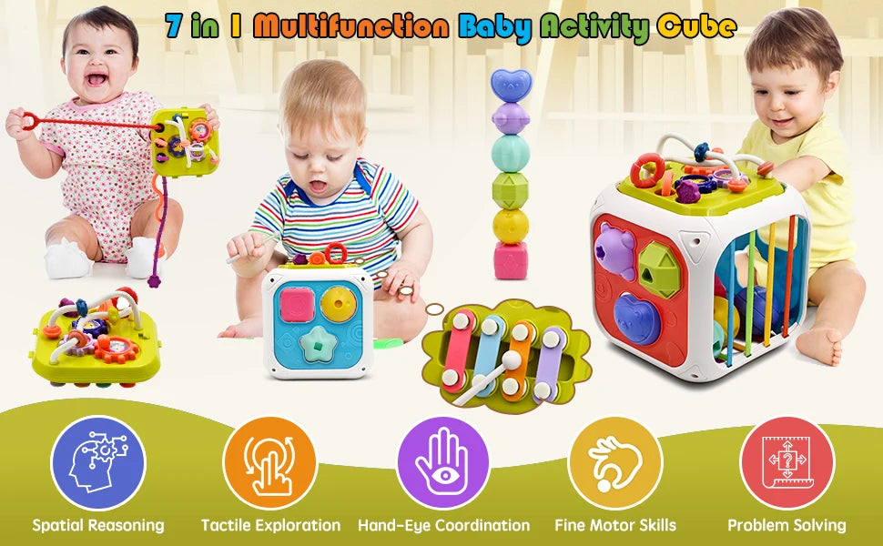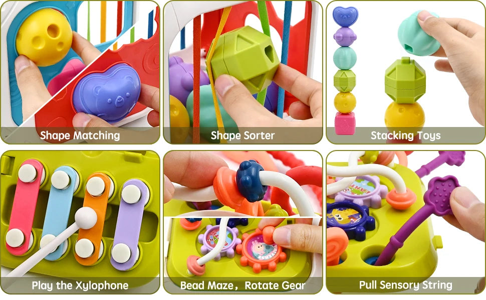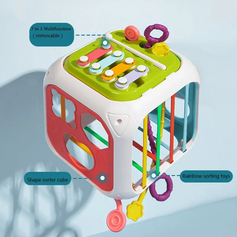 لعبة فرز الأشكال الحسية 7 في 1 للرضع والأطفال | ألعاب مونتيسوري تعليمية +6-12 شهراً